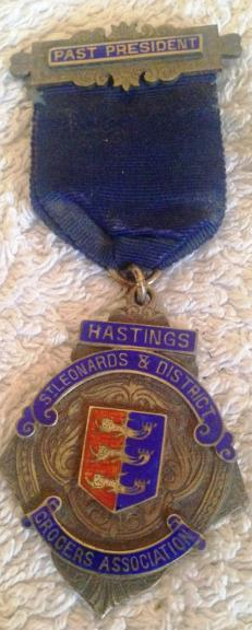 1939 Grocers Association Enamel & Silver Badge & Ribbon Hastings