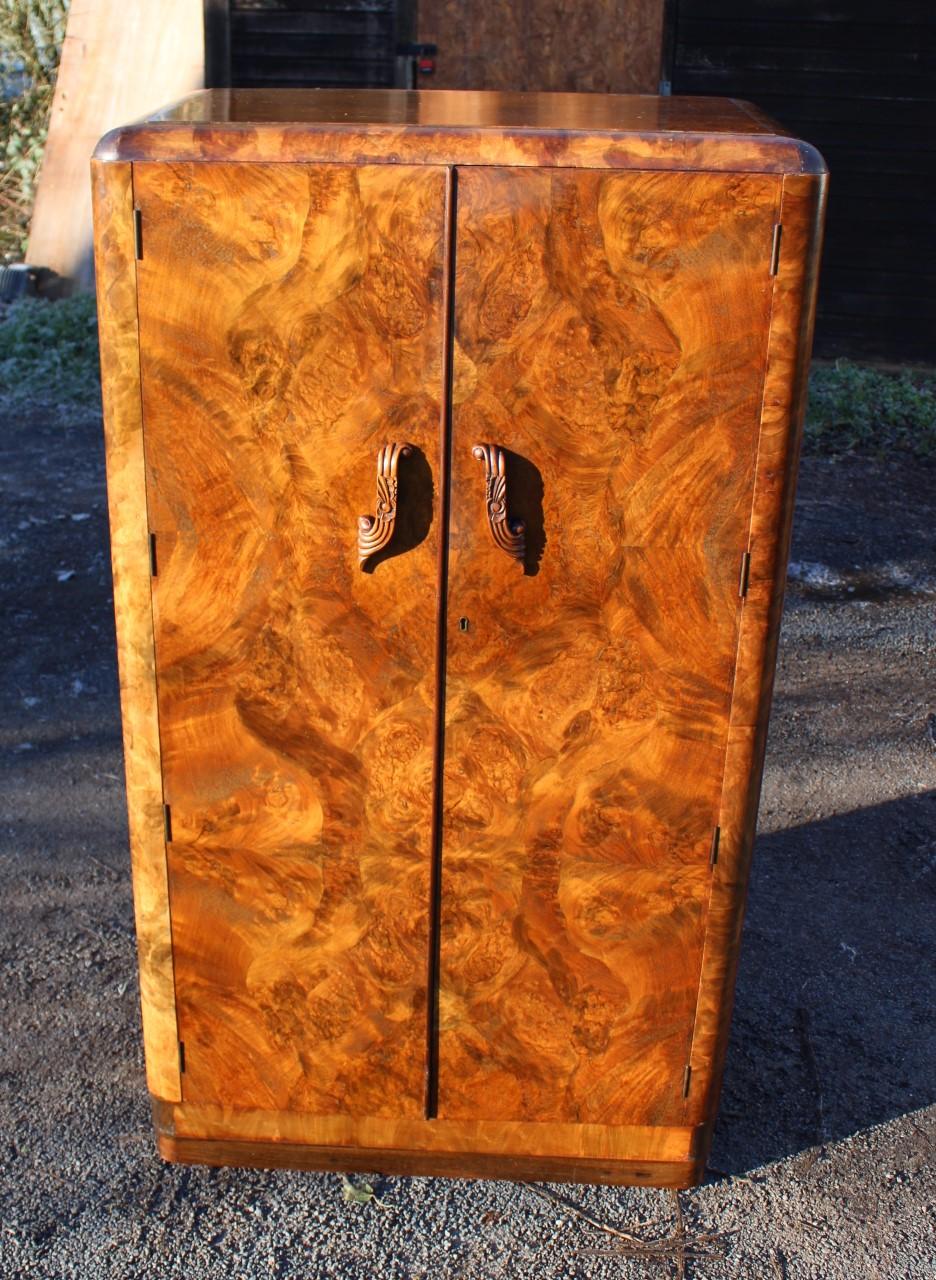 1940s 2 Door Burr Walnut Deco Fitted Wardrobe
