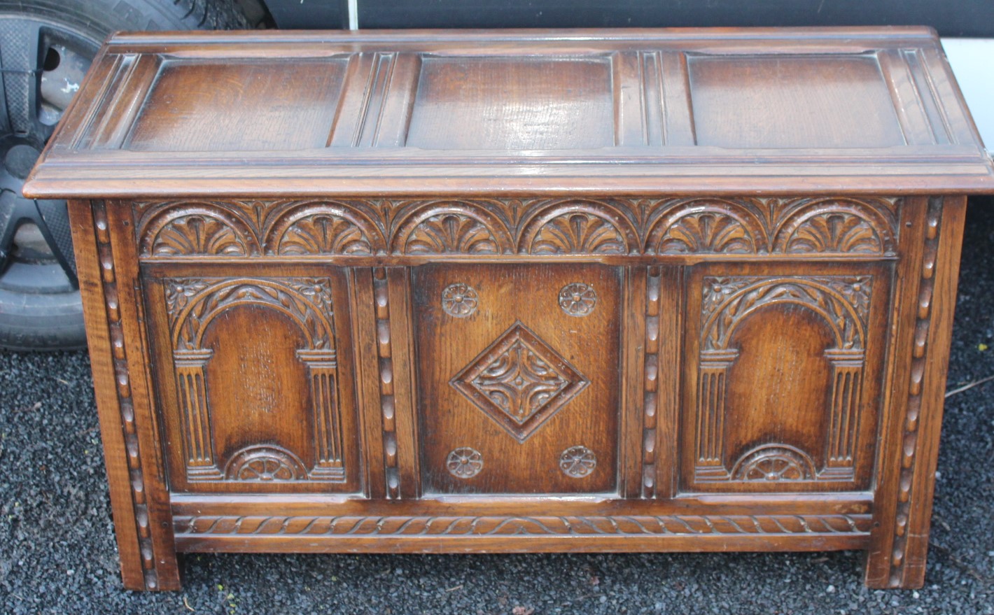 1940s Carved Oak Blanket Chest, Very Versatile, Storage Options