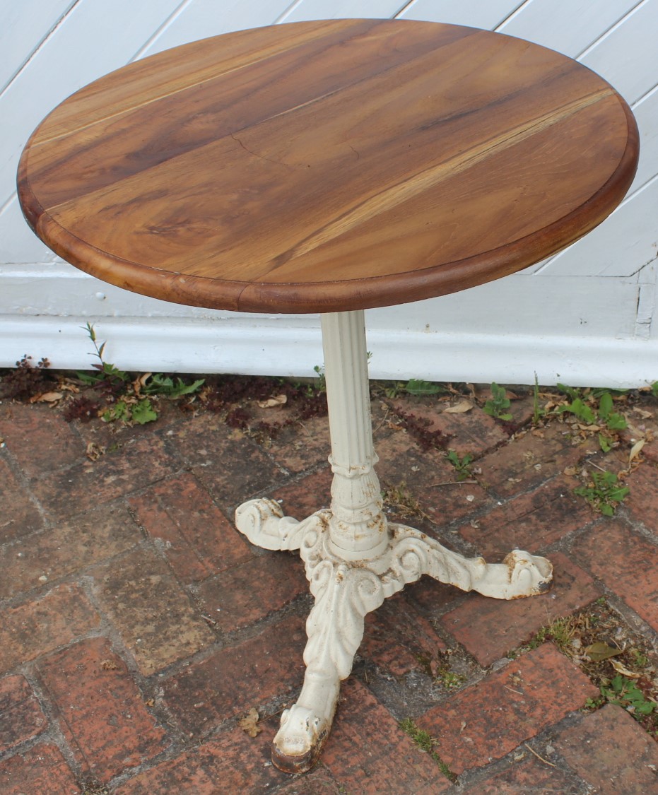 1940s Cast Iron Base Round Pub Table Wood Top