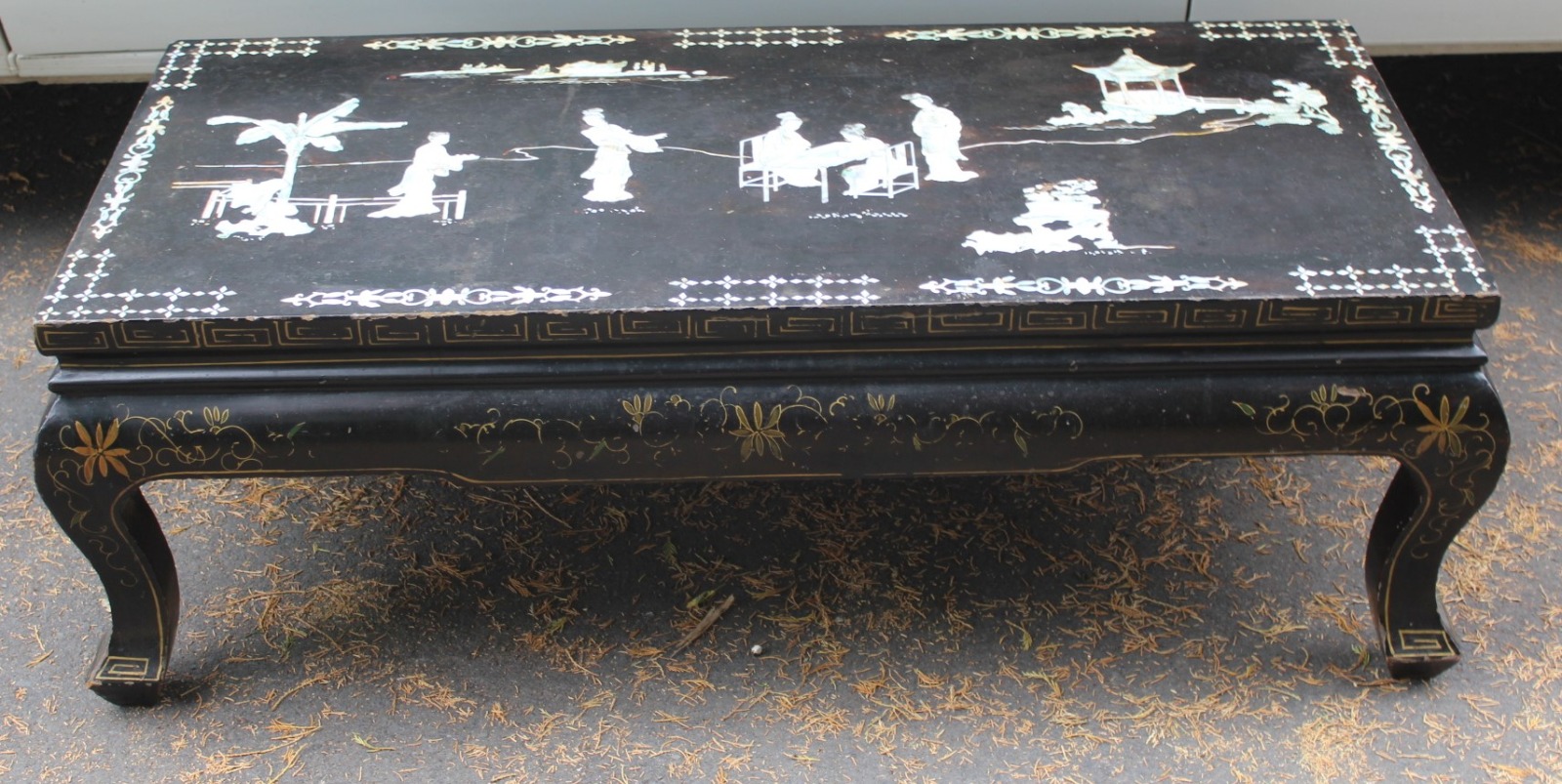 1940s Chinoiserie Coffee Table with Mother of Pearl Inlay