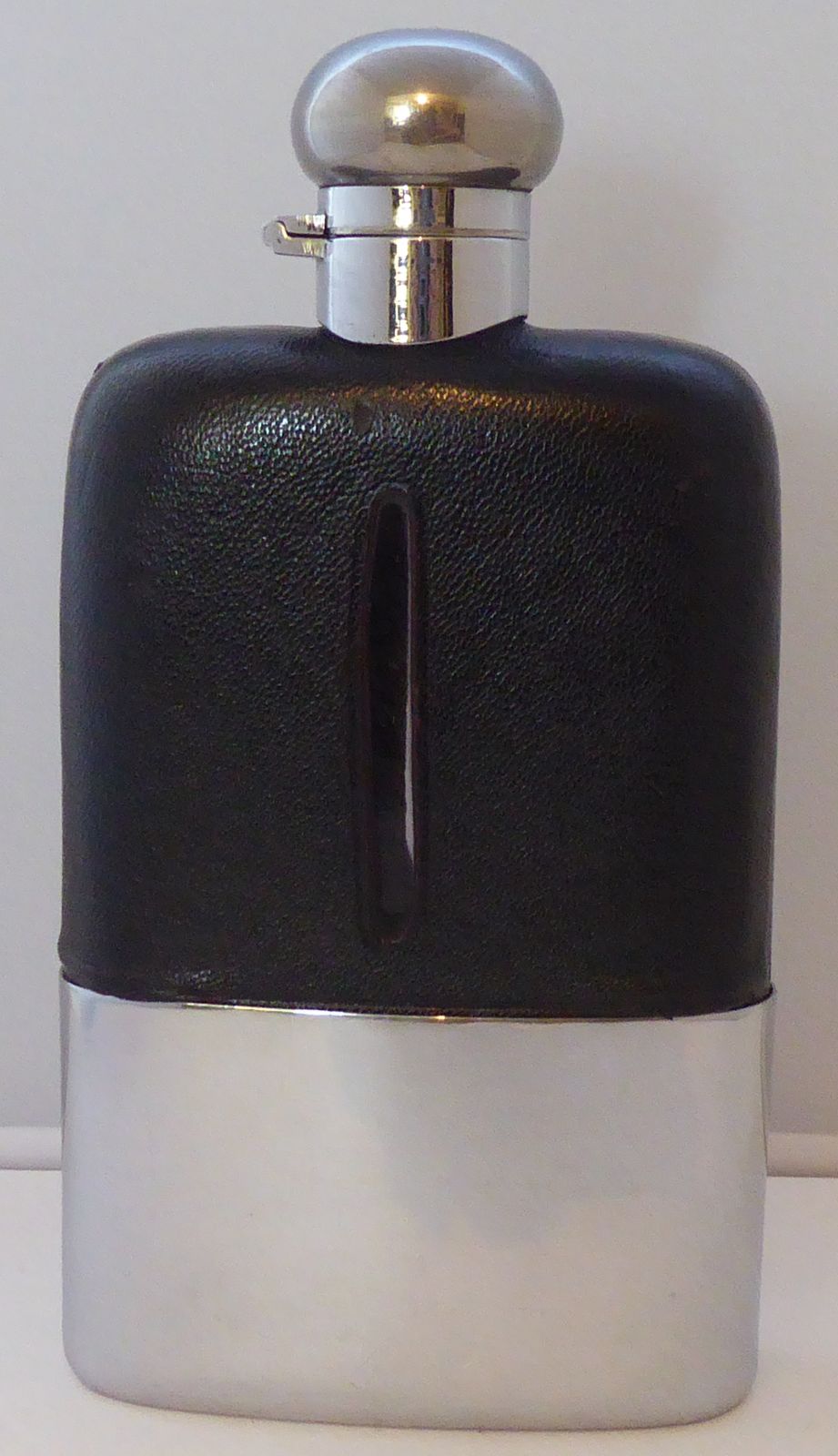 1940's Chrome Plate Plated Leather Bound Glass Hip Flask 1/2 Pint