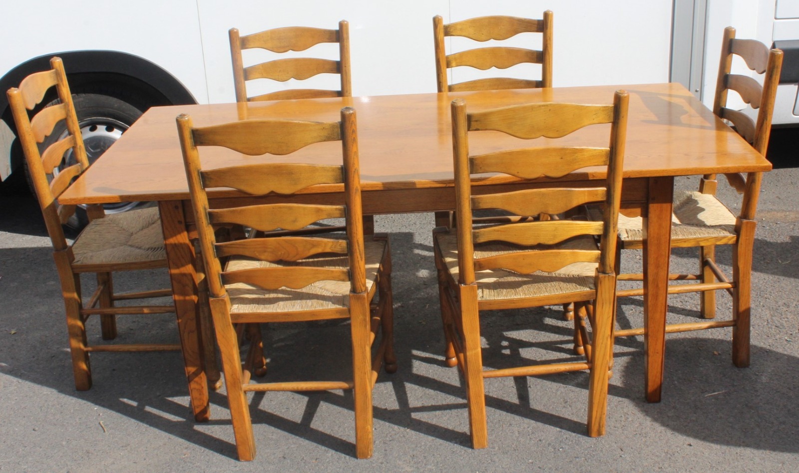 1940s Golden Oak Dining Suite with Set 6 Ladder Back Oak Chairs