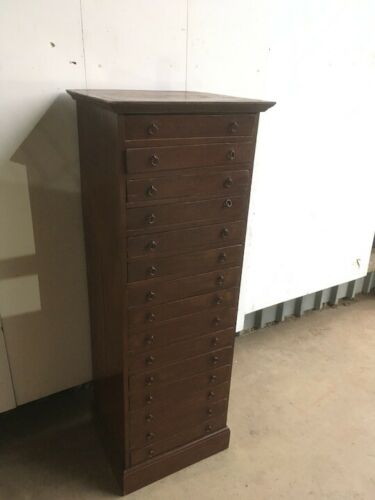 1940s Hardwood 15 Drawer Chest of Drawers / Filing Cabinet