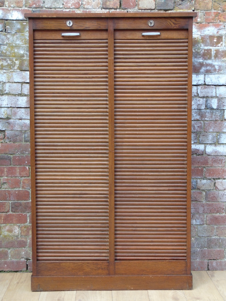 1940s Industrial Tambour Front Cabinet