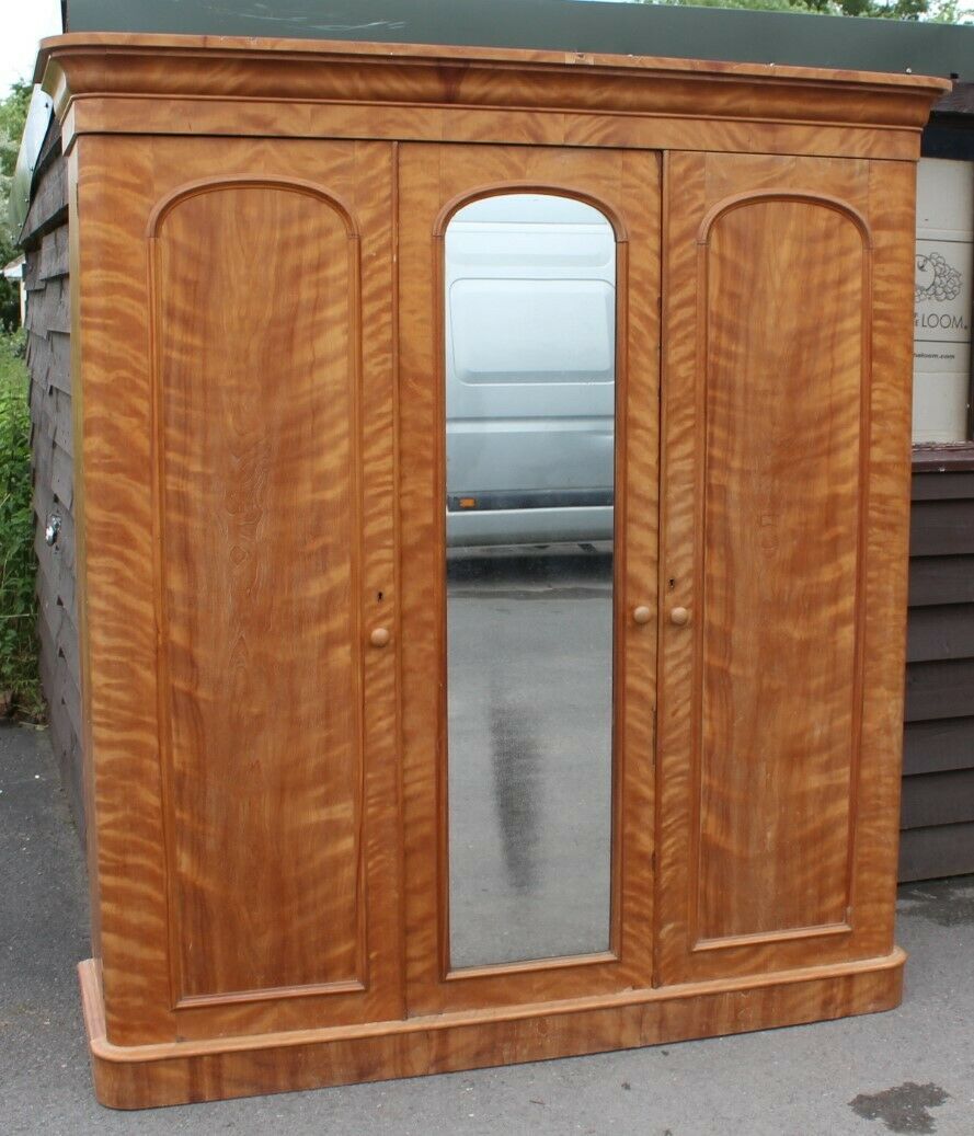 1940s Large Walnut 3 Door Mirrored Wardobe with Good Interior