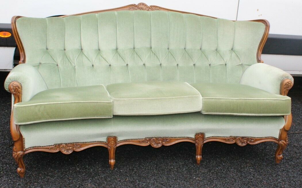 1940s Louis XV Style Elegant 3 Seater Sofa in Mint Green