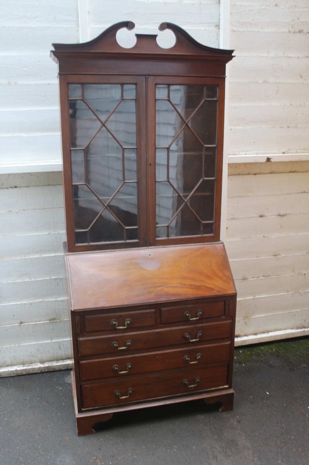 1940s Mahogany Astragal Glazed Bureaux Bookcase