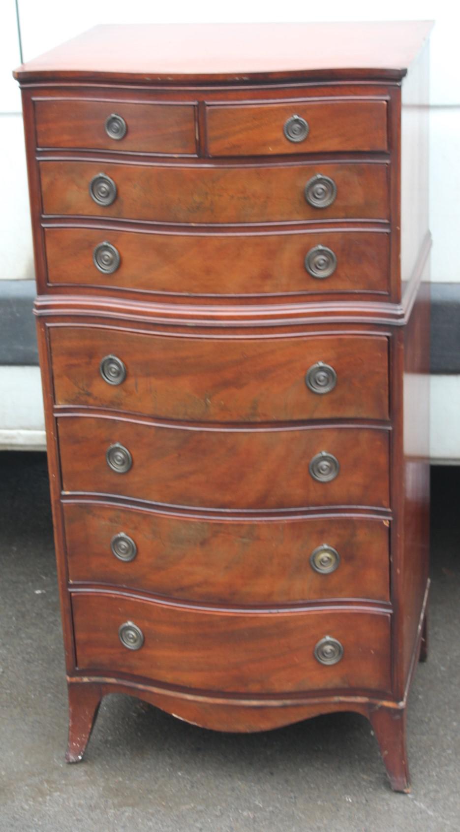 1940s Mahogany Bow Chest on Chest 8 Drawers