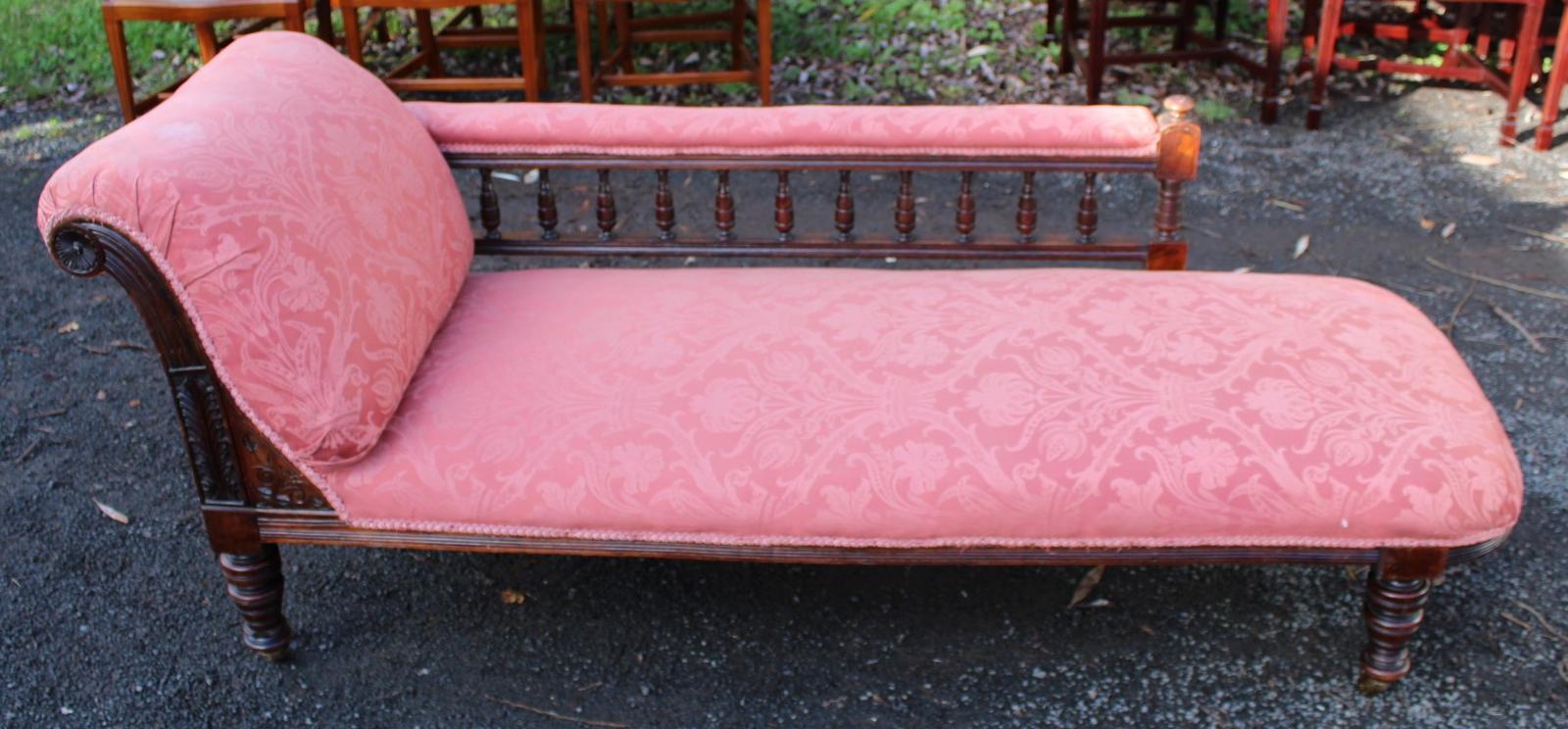 1940s Mahogany Chaise in Pink Upholstery