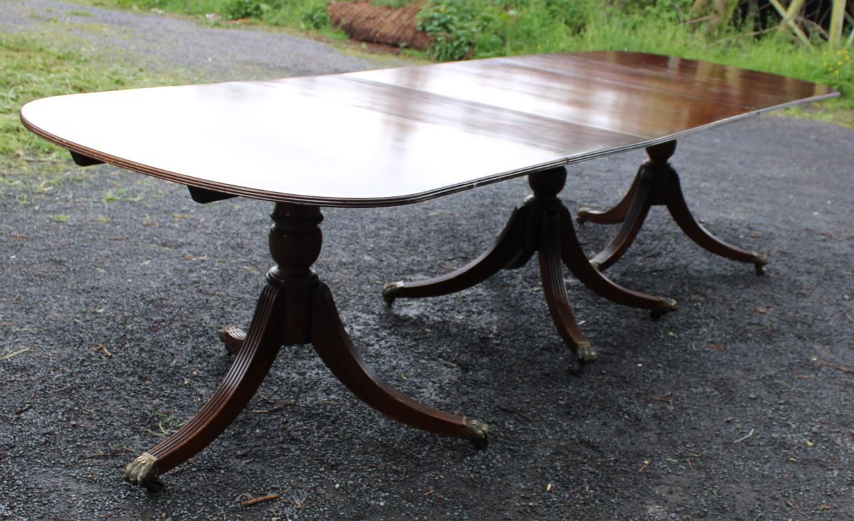 1940s Mahogany Dend Dining Table on 3 Pedestals with 2 Leaves