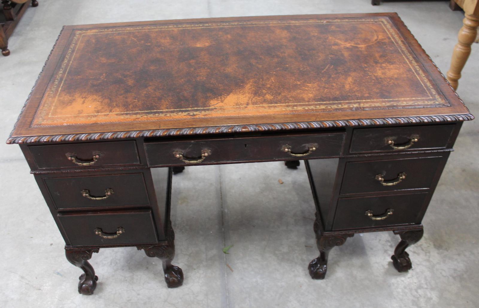 1940s Mahogany Desk with Brown Leather Inset.1 Piece
