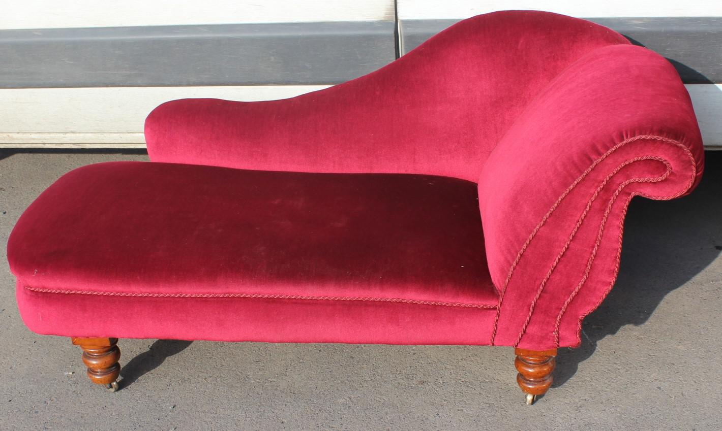 1940's Mahogany Framed Chaise in Red Upholstery