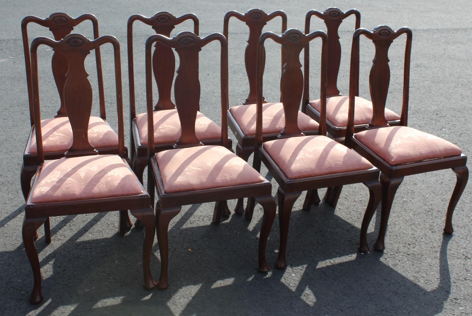 1940's Mahogany Set 8 Queen Anne Dining Chairs with Pink Seats