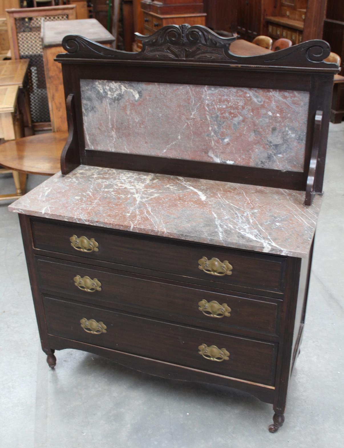 1940s Mahogany Washstand with Marble Top and Back with Drawers