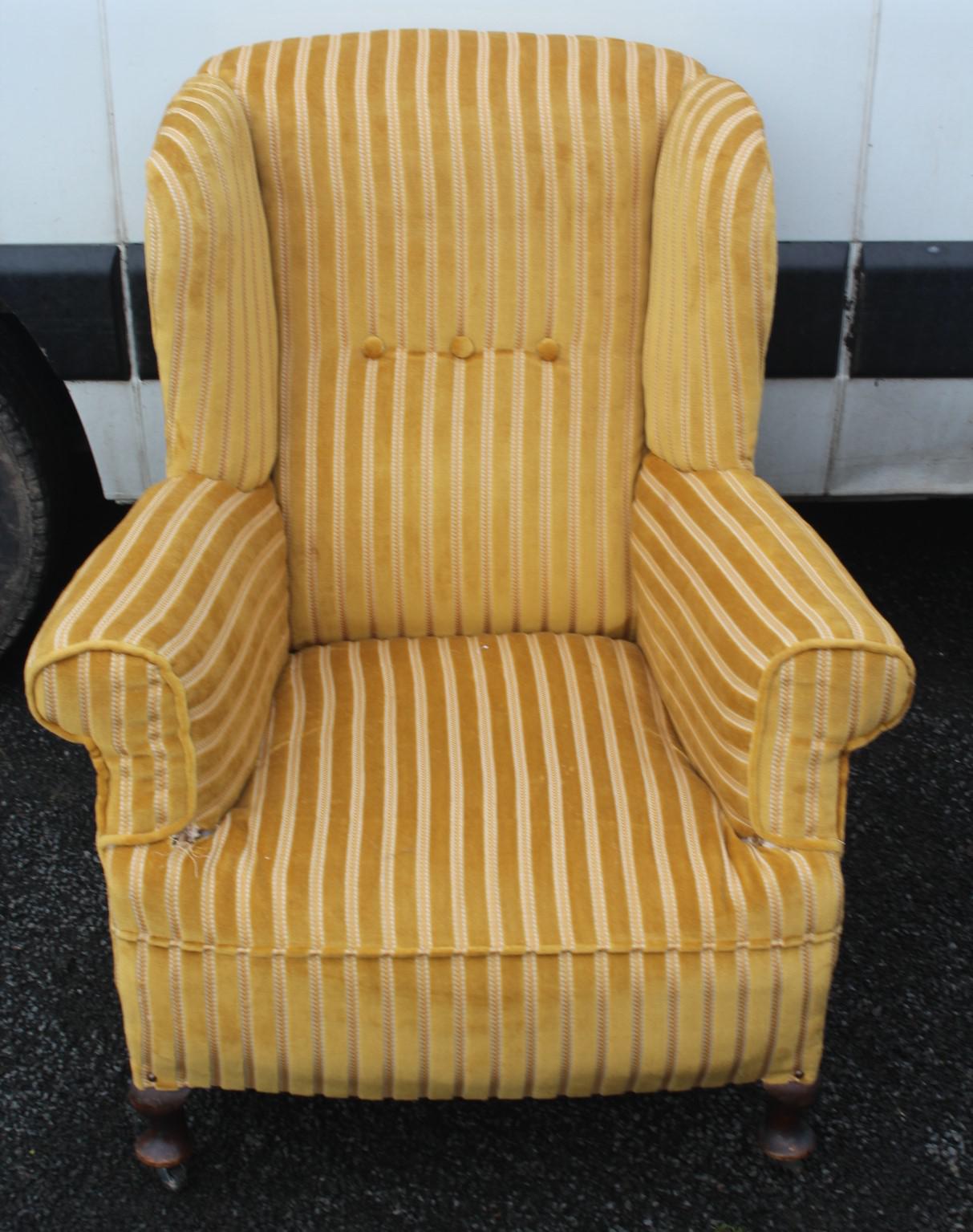 1940s Mahogany Wingback Armchair Upholstered in Gold. Nice Shape