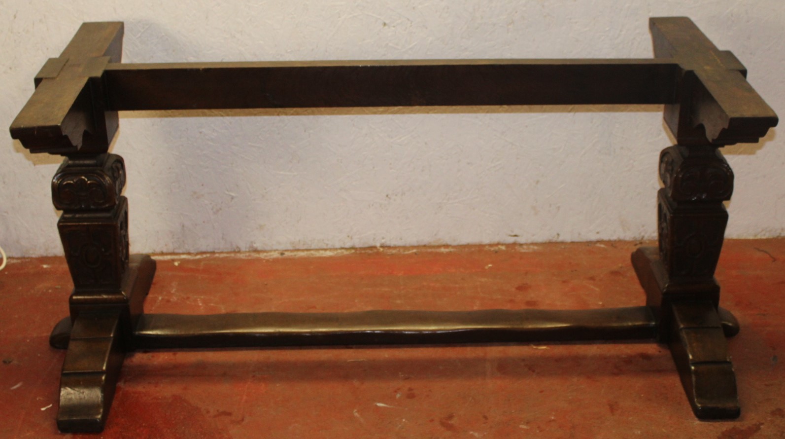 1940s Oak Refectory Table with Nice Carved Shaped Base