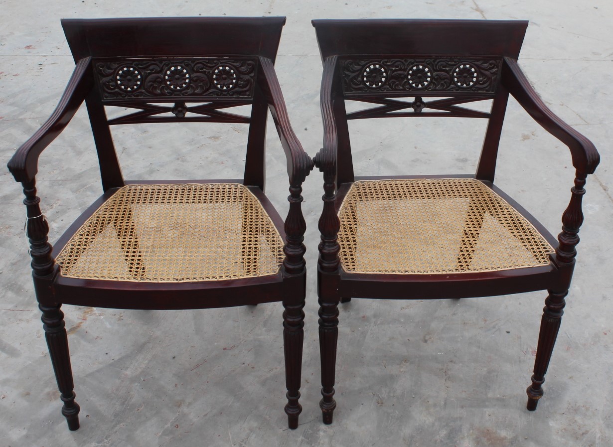 1940s Pair of Occasional Mahogany Barback Chairs with Cane Seats
