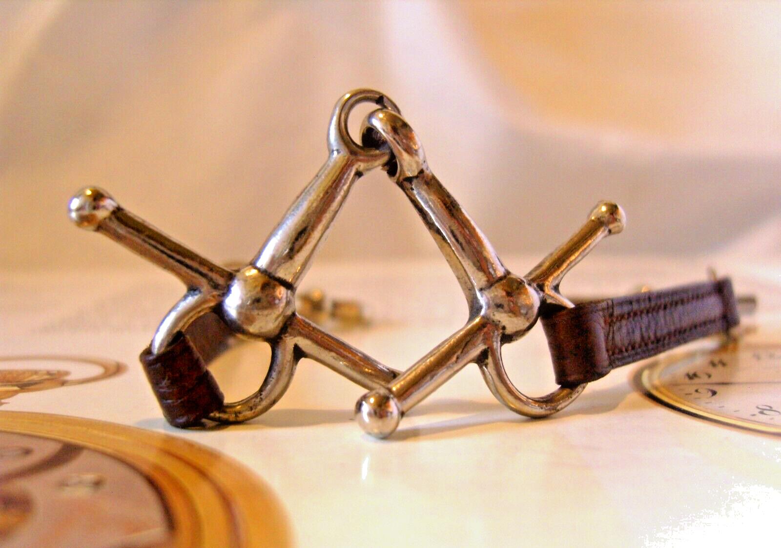 1940s Pocket Watch Chain Brown Leather Albert With Horse Snaffle Bit