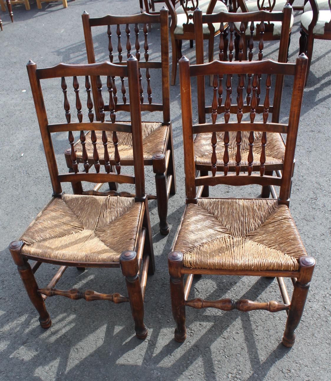 1940s Set 4 Oak Spindleback Dining Chairs with Rush Seats