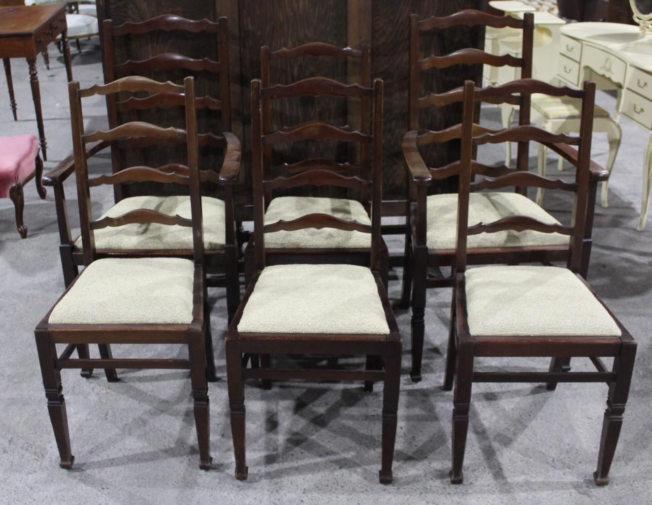 1940s Set 6 Oak Ladderback Dining Chairs with Rush Seats. 5+1 Carvers
