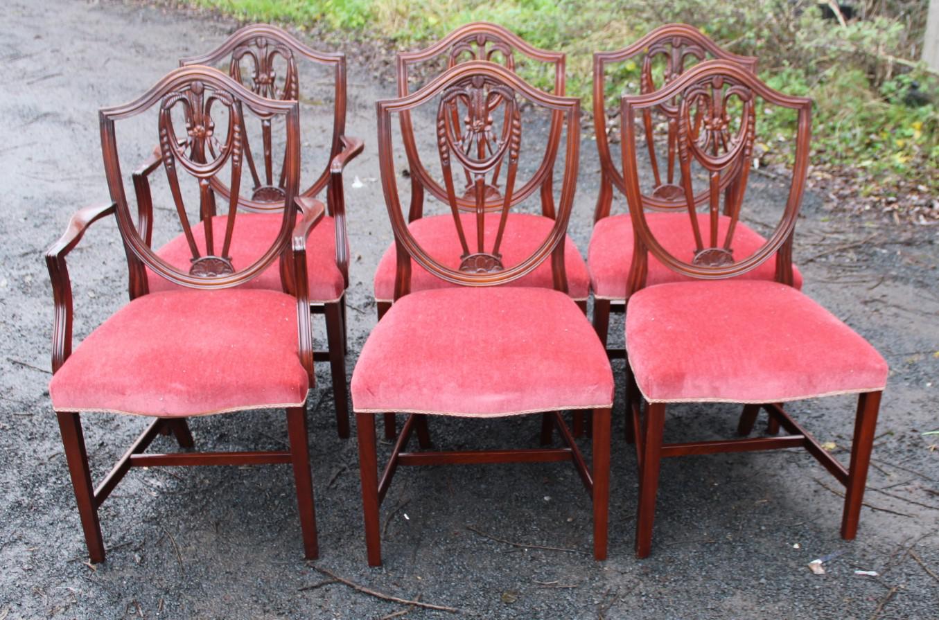 1940s Set of 6 Mahogany Prince Wales Chairs Pop-out Seats. Red. 4+2 Carvers