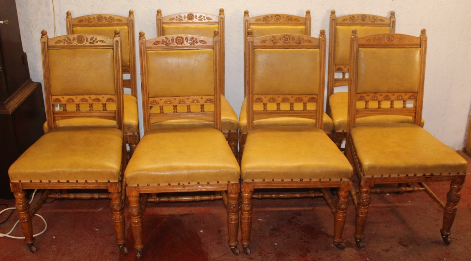 1940s Set of 8 Golden Oak Arts & Crafts Style Dining Chairs