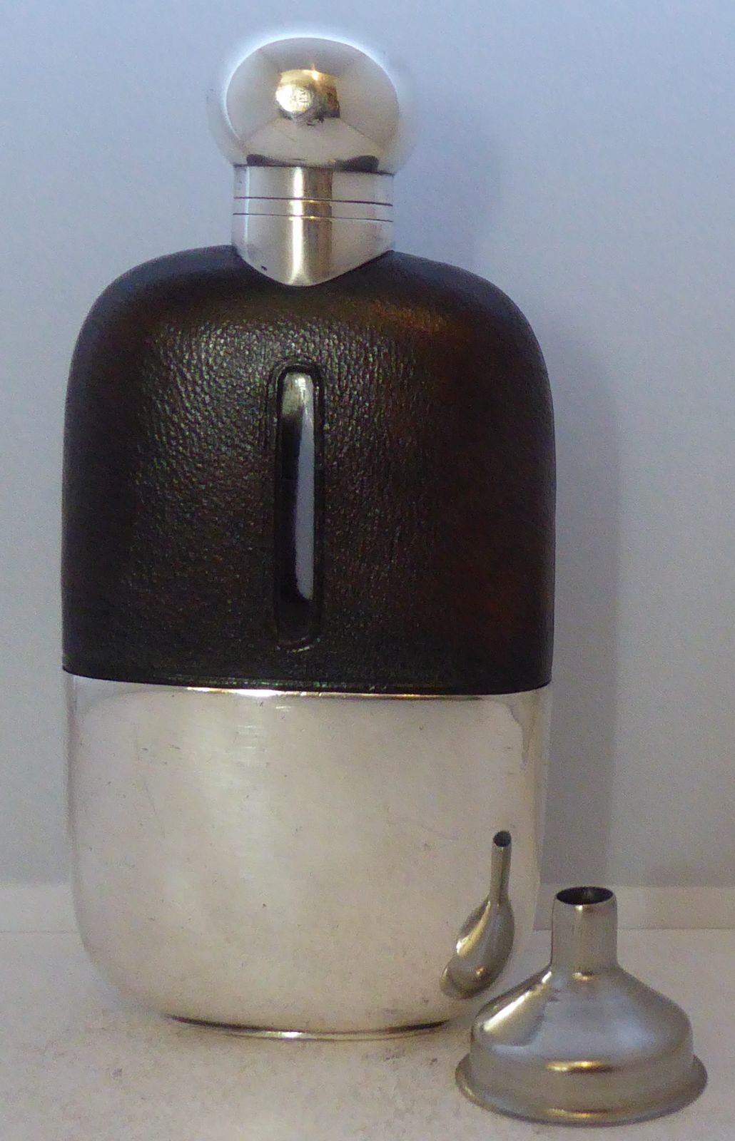 1940s Silver Plated Leather Bound Glass Hip Flask G & JW Hawksley
