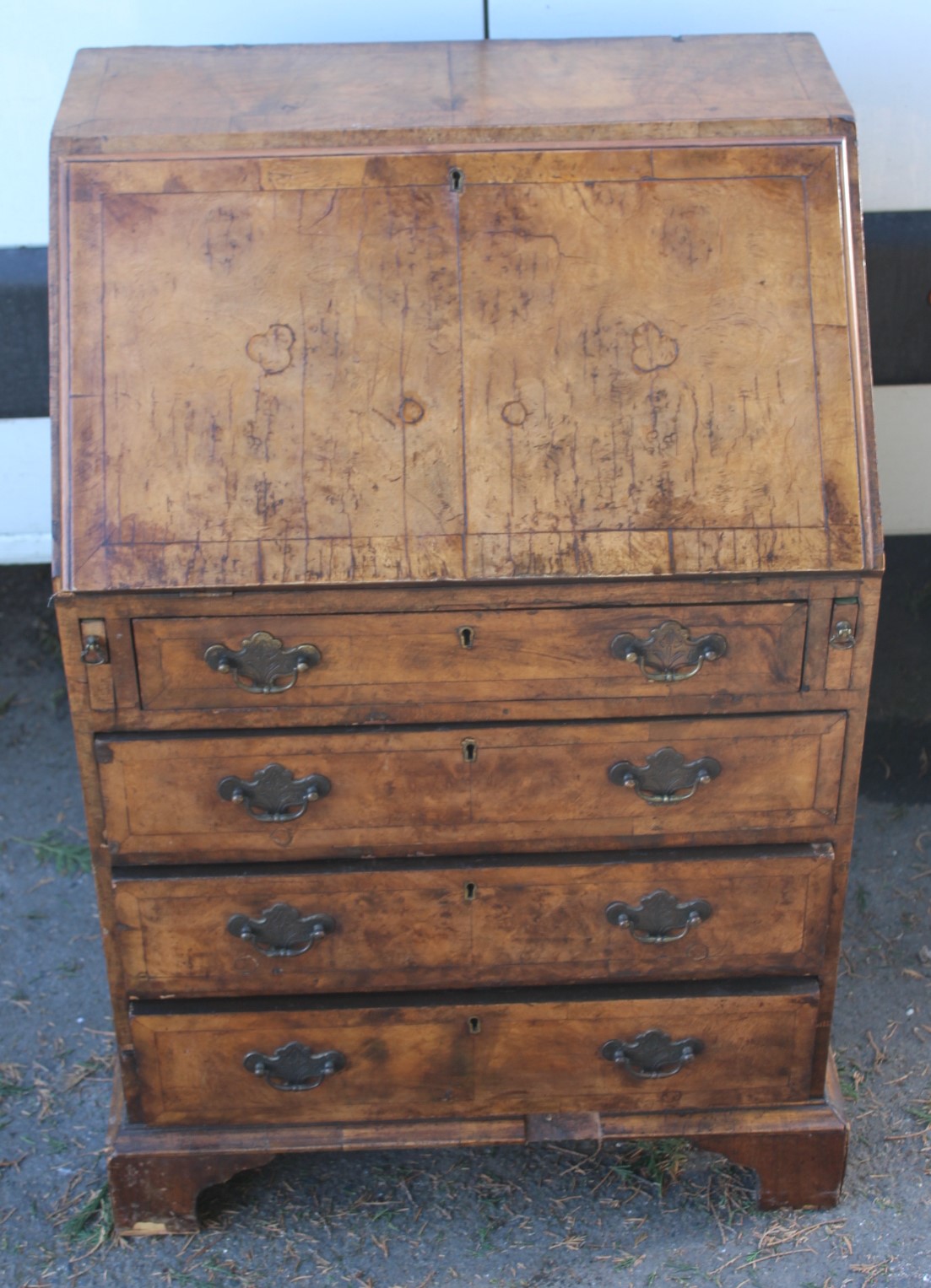 1940s Small Mahogany Bureau with 4 Drawers & Slides. Good Interior