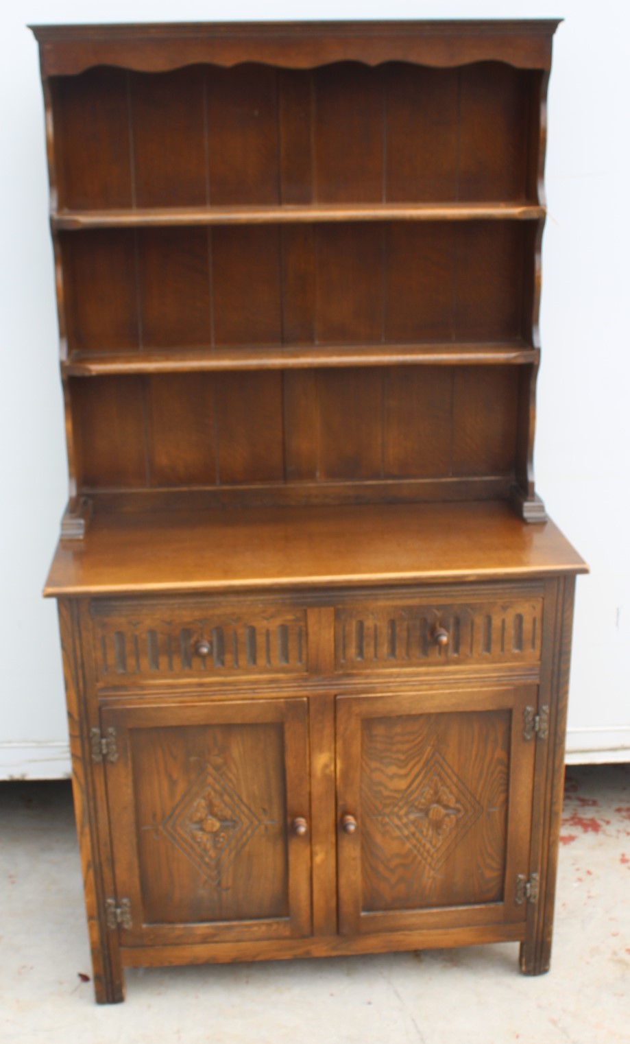 1940s Small Oak Dresser with Rack Linenfold in Panels