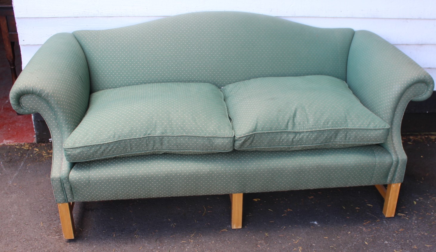 1940s Vintage Camelback 3 Seater Sofa Upholstered in Green