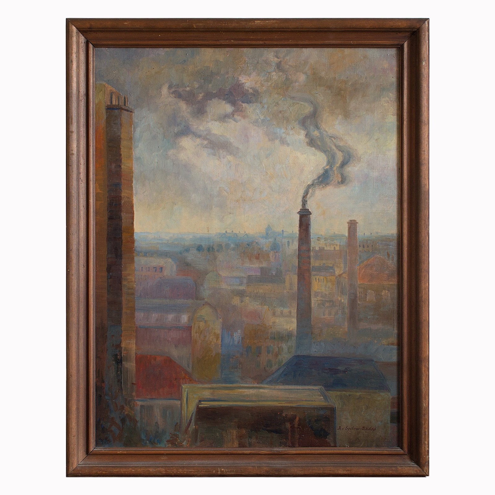1940s Vintage Cityscape, Brita Von Sydow Södöö, City View with Chimneys
