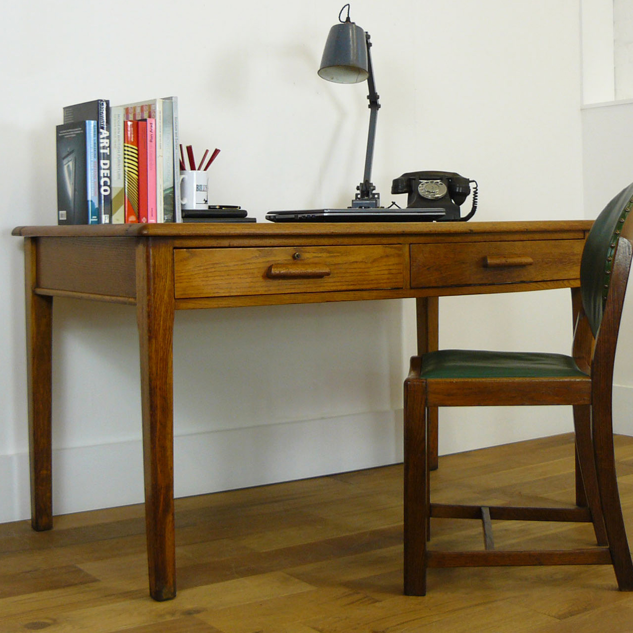 1940s Vintage Oak Two Drawer Desk (1 of 1)