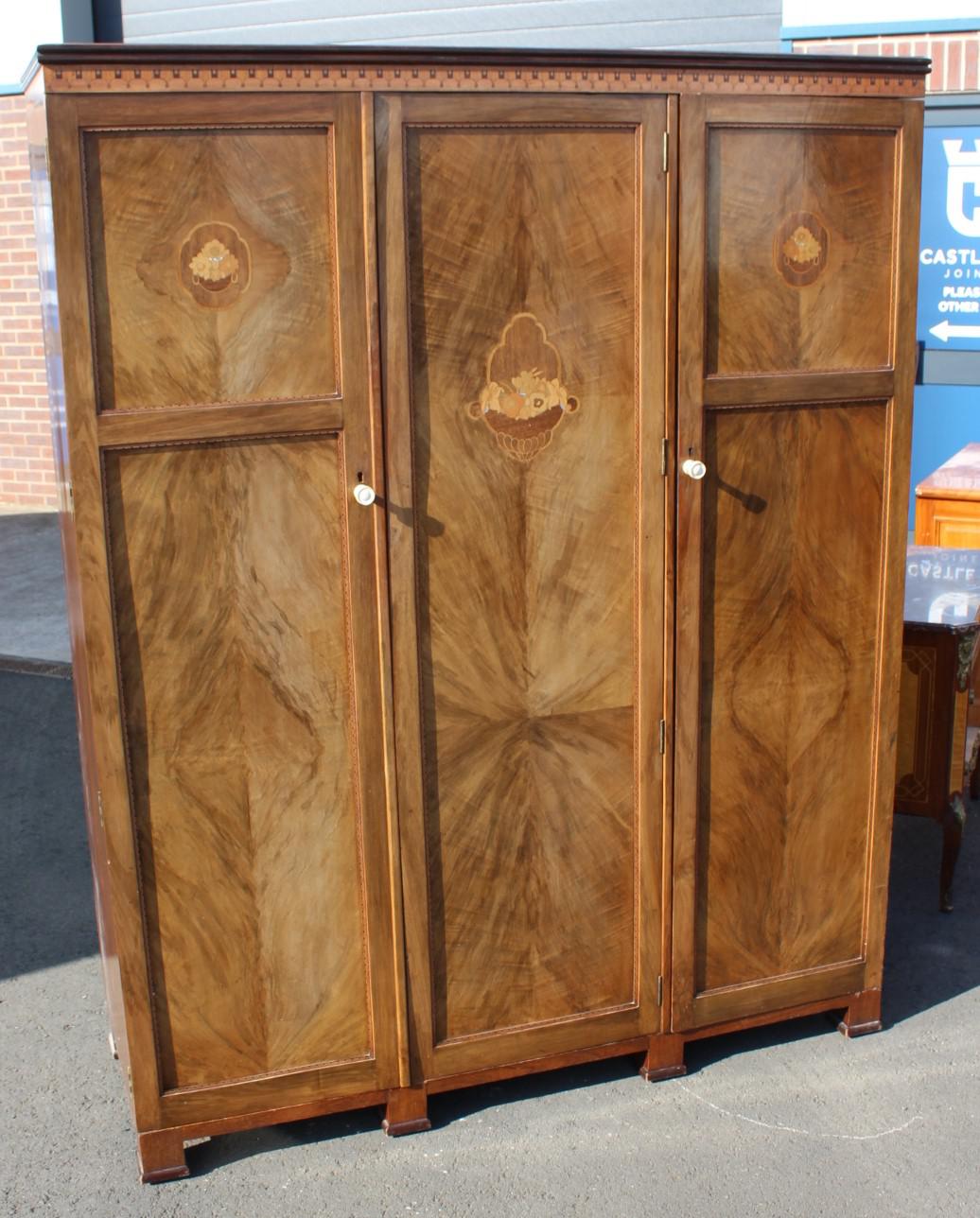 1940s Walnut 3 Door Wardrobe with Inlay Detailing.