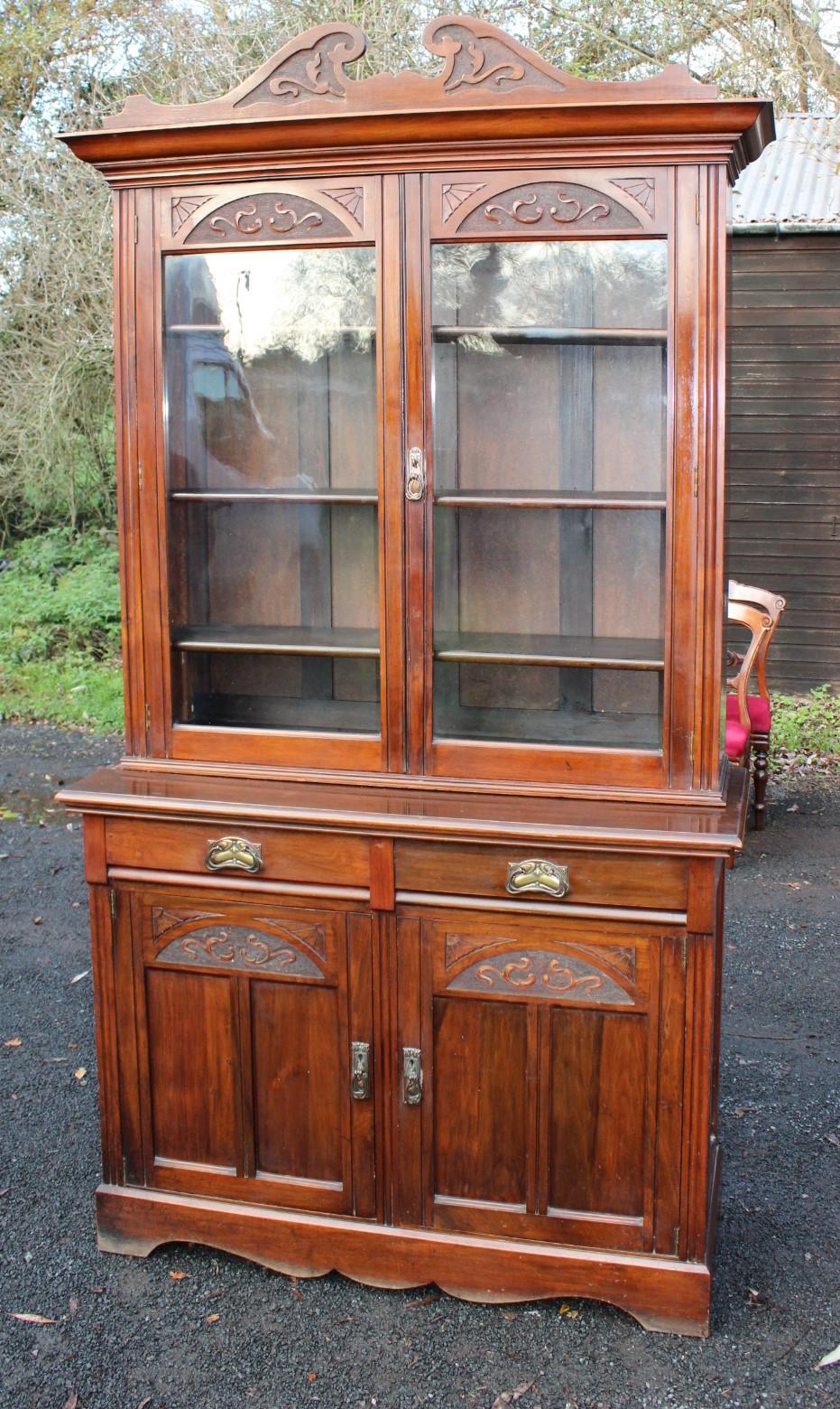 1940's Walnut Art Nouveau Style Chiffonier Bookcase