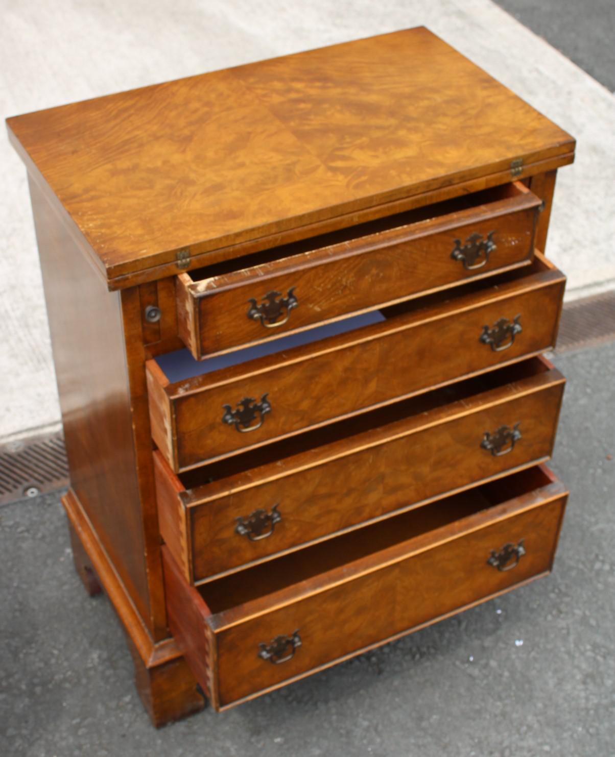 1940s Walnut Bachelors Chest Drawers with Table Top