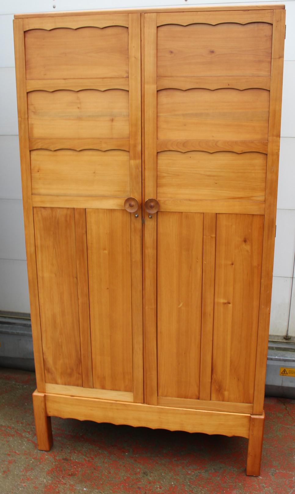 1940s Well Fitted Cherry Wood Double Wardrobe