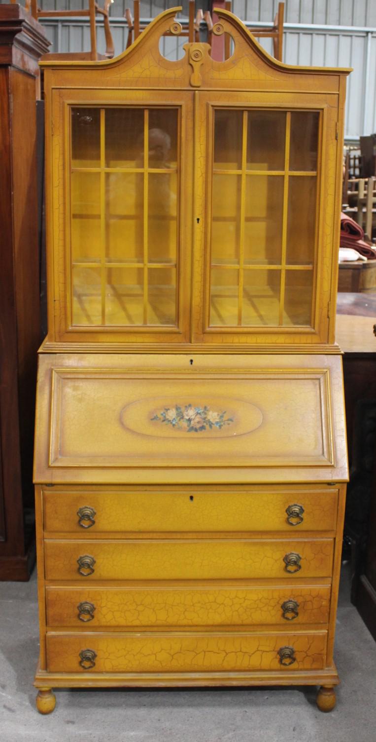 1940's Yellow Painted Bureaux Bookcase in Crackled Effect