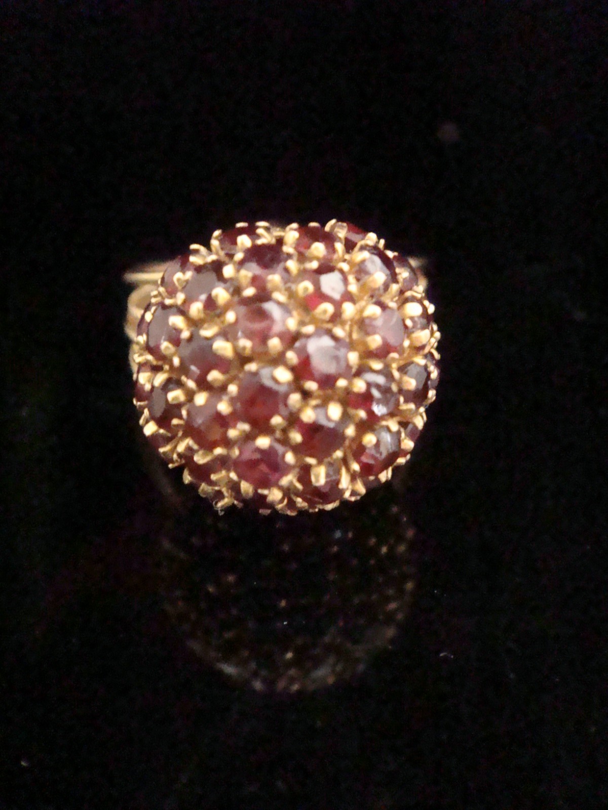 1950s 9ct Yellow Gold Retro Bombe Garnet Cluster Ring