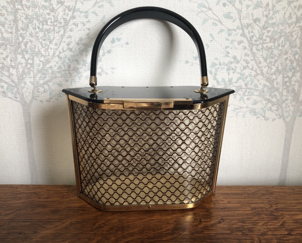 1950s American Black & Gold Hexagonal Lucite Handbag