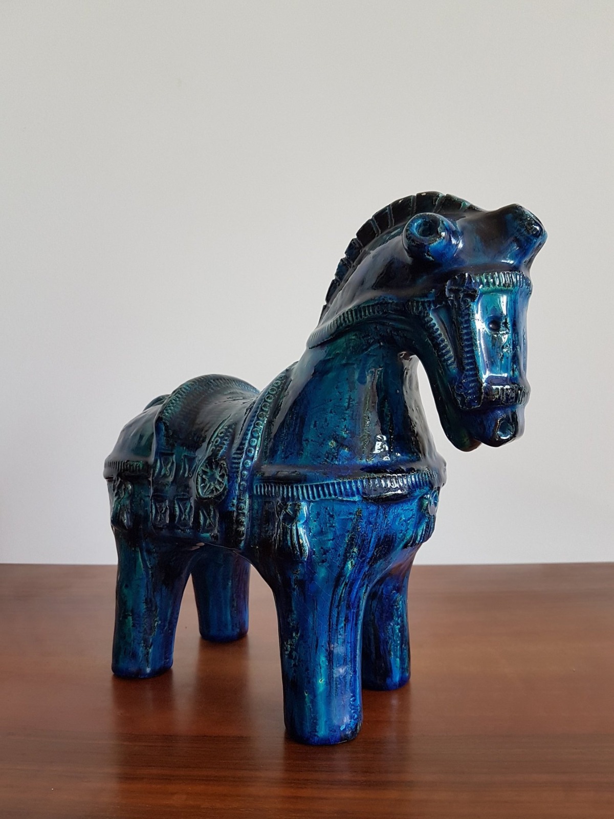 1950s Italian Bitossi, Iconic 'Rimini Blu' Series Persiano Blue Glaze Ceramic Horse