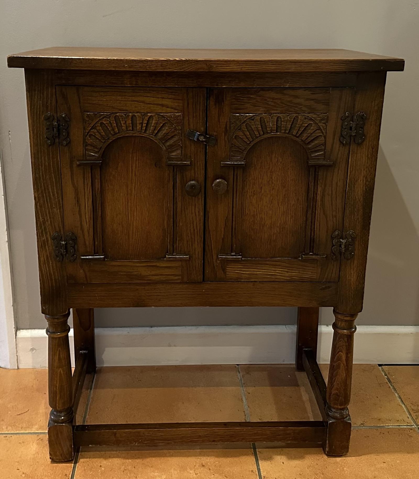 1950s Mid Century Oak Carved Side Cabinet