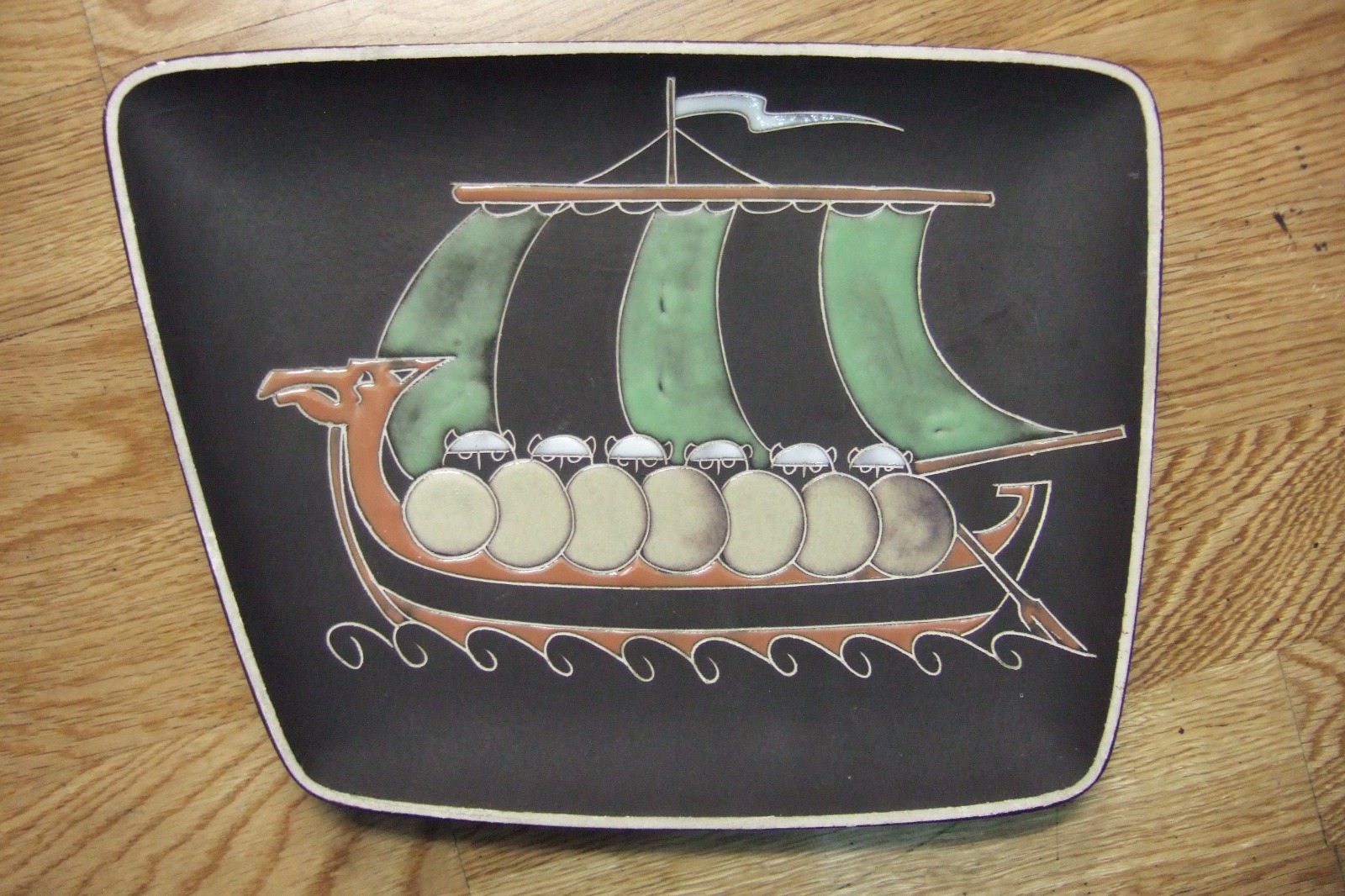 1950s Norwegian Pottery Platter Featuring a Viking Ship (1 of 1)