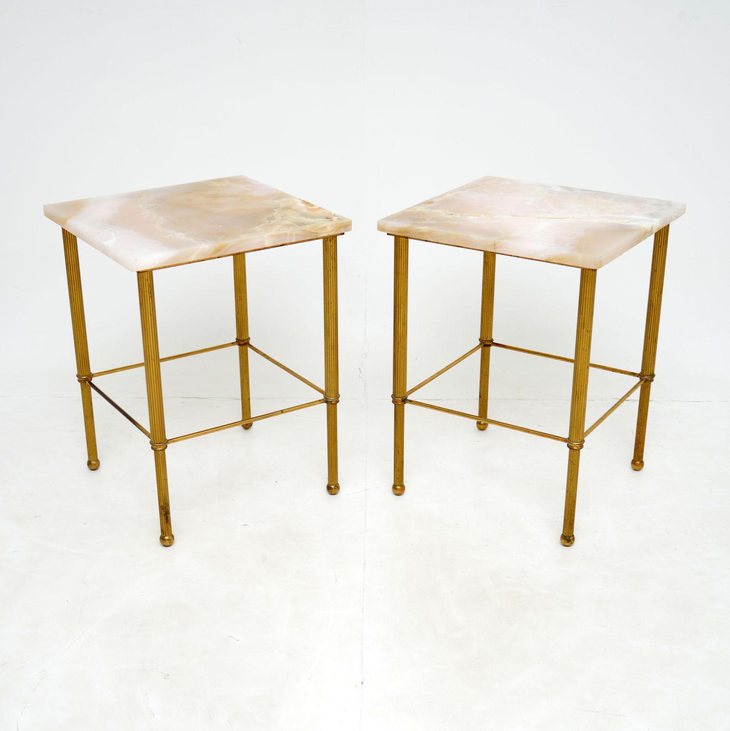 1950's Pair of Vintage Marble & Brass Side Tables