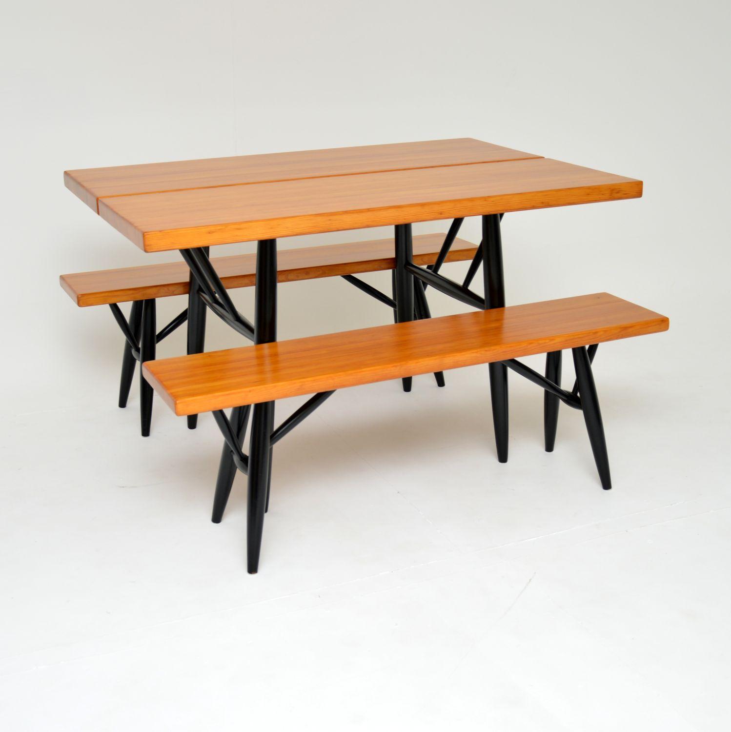 1950s Pirkka Dining Table & Benches by Ilmari Tapiovara for Asko