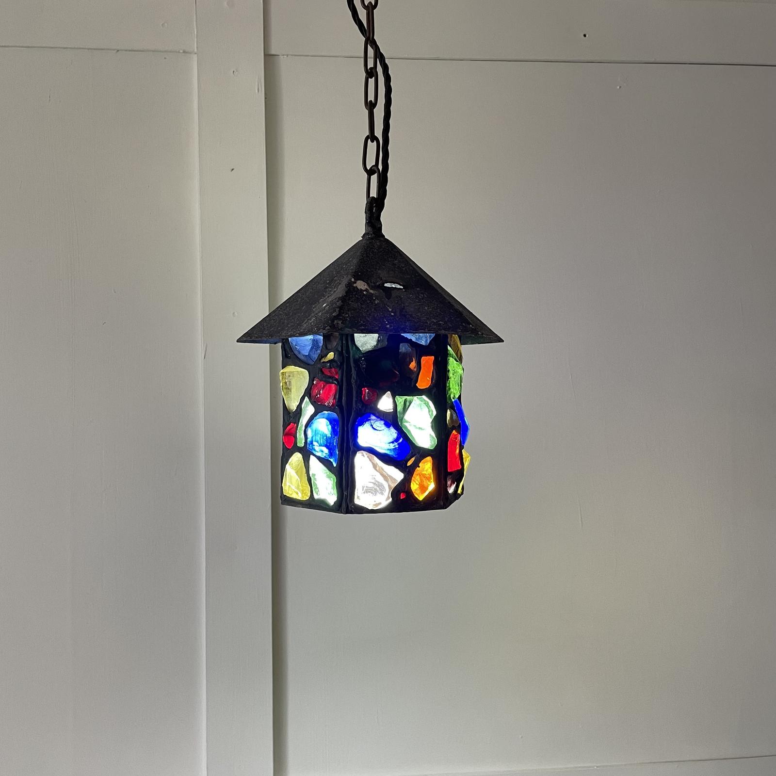 1950's Rock Glass Porch Lantern