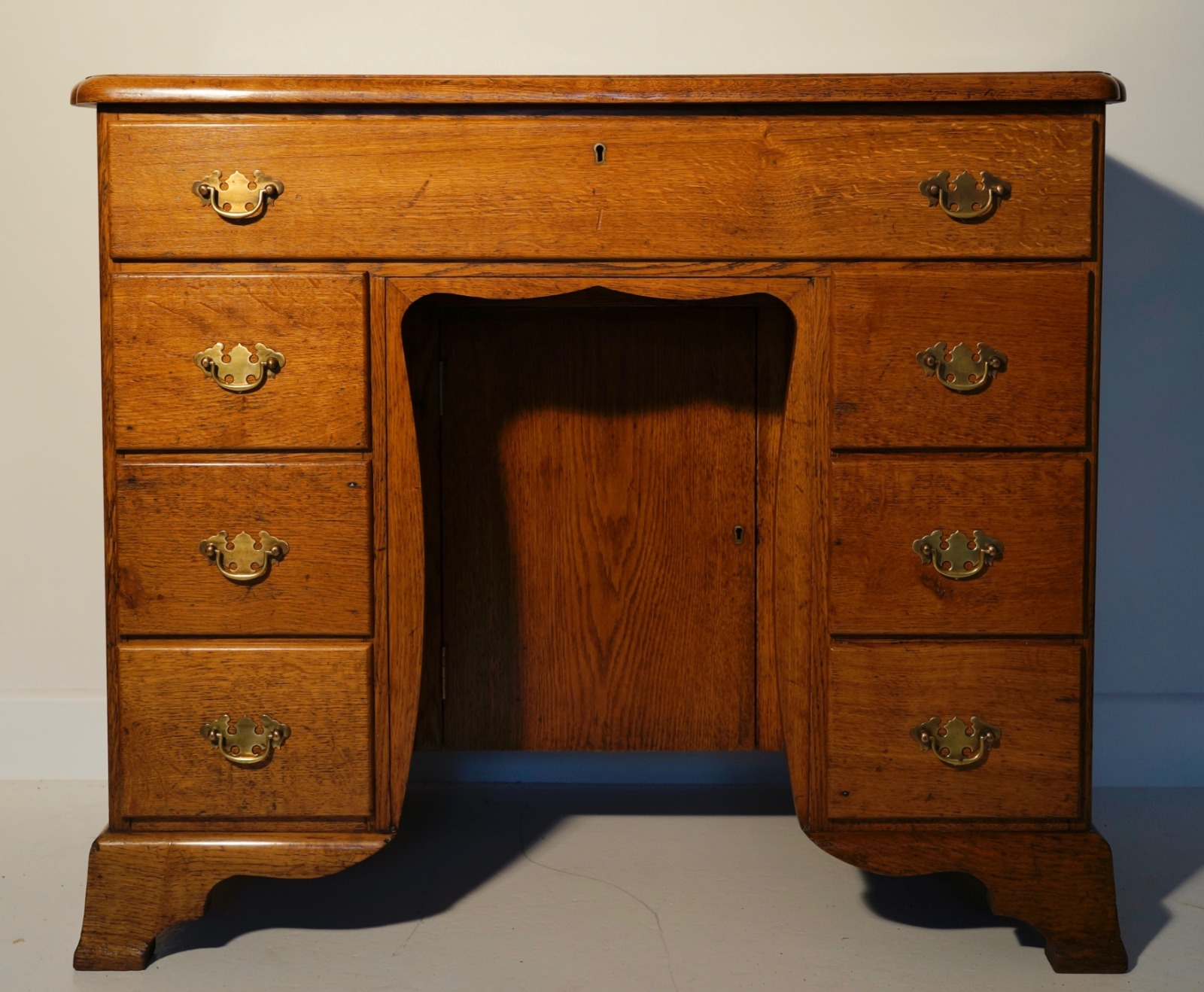 1950s Very Well Constructed Compact Solid Oak Kneehole Desk with Cupboard