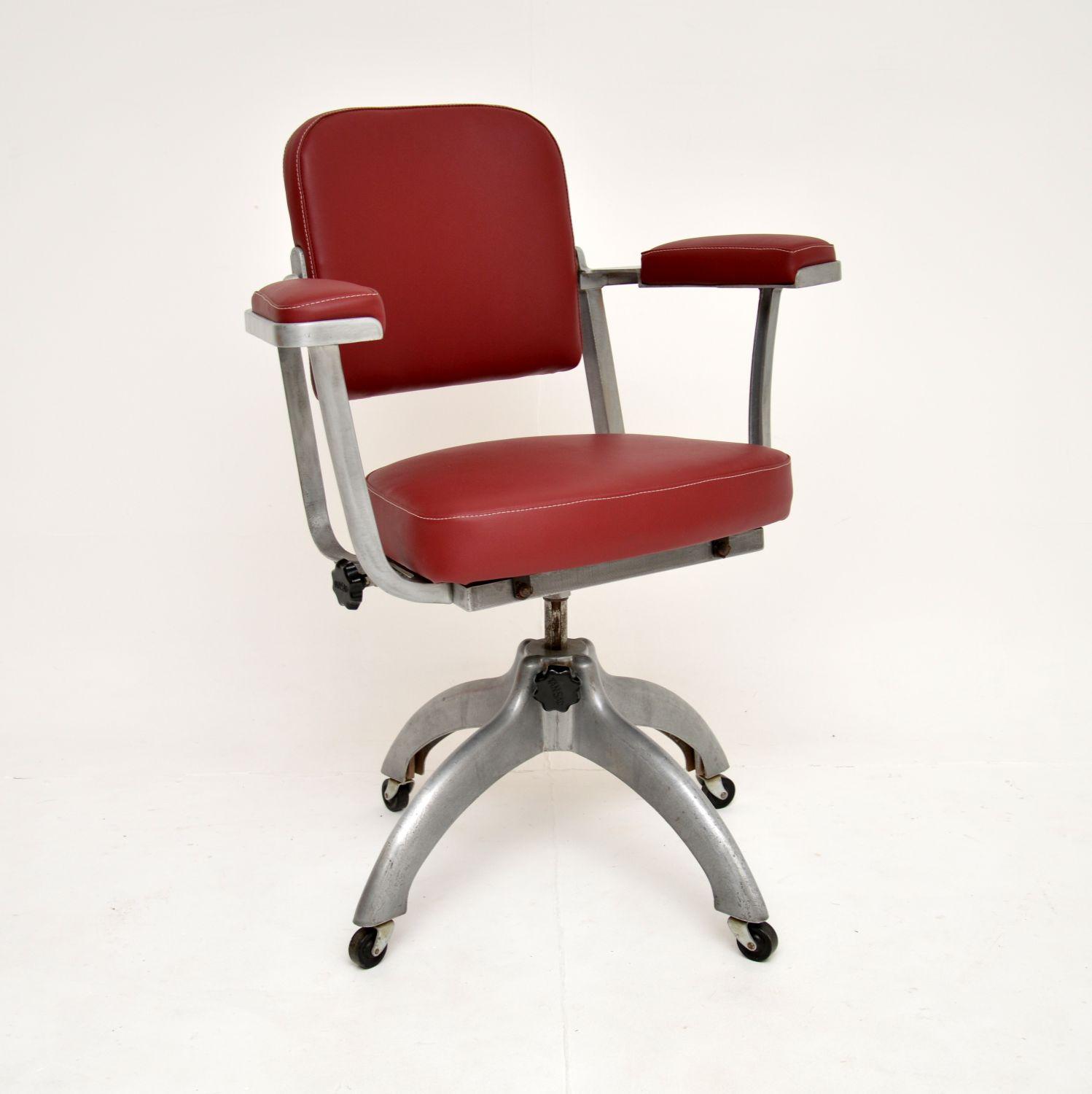 1950s Vintage Leather & Steel Swivel Desk Chair by Tan-sad