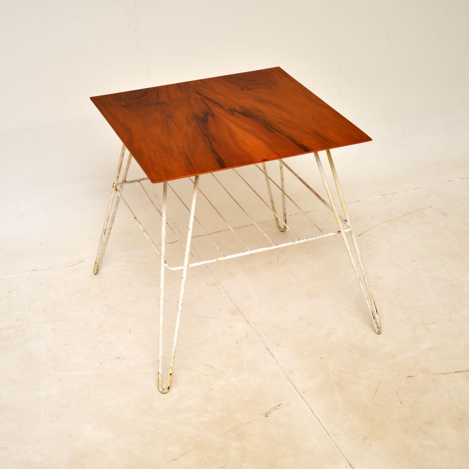 1950s Vintage Walnut & Steel Side Table (1 of 8)