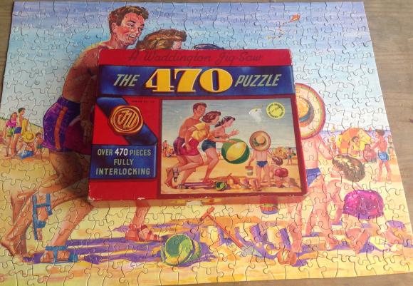 1950s Waddingtons 470 Piece Cardboard Jigsaw, Beach Scene Complete